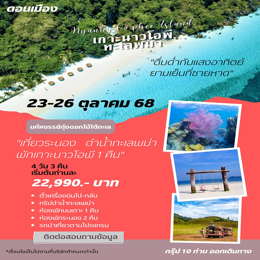 ทัวร์ระนอง เที่ยวระนอง ดำน้ำทะเลพม่า พักเกาะนาวโอพี 1 คืน (FD)